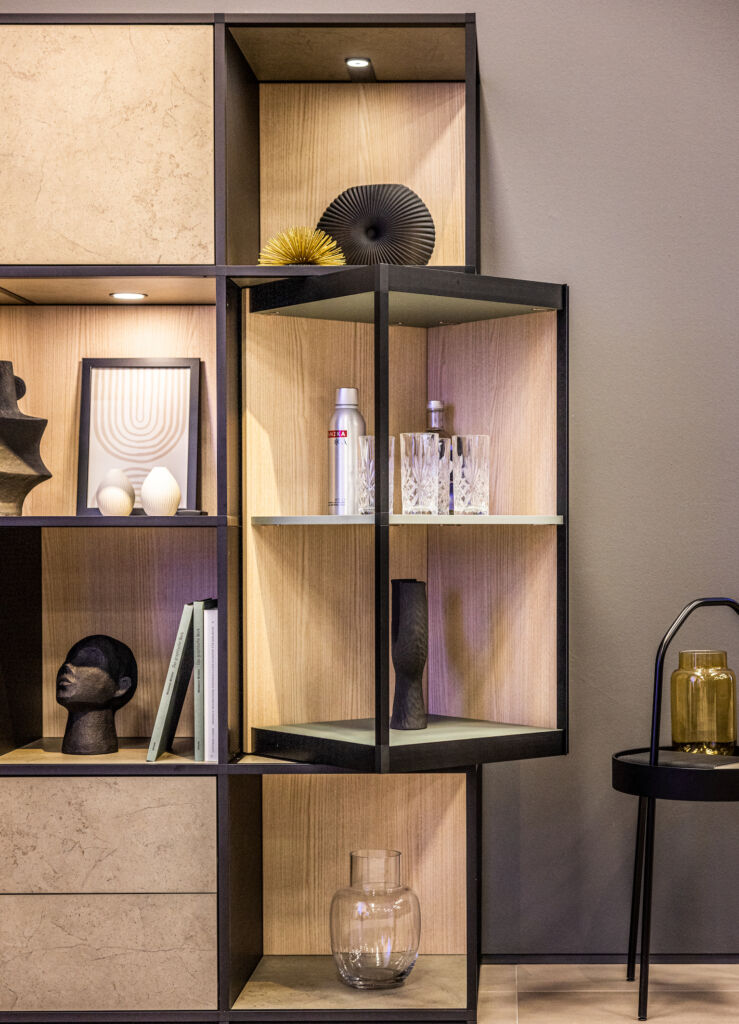 Hettich geht mit alldem auf einen bestimmten Kundenwunsch ein: Für anspruchsvolle Möbelkunden aus dem Premiumsegment zählt Einzigartigkeit. Gesucht wird das Außergewöhnliche. Hier setzt FurnSpin an: Der Beschlag erlaubt neuartige Möbel- und Raumkonzepte, die sich vom Standard abheben – unter anderem, weil der Wechsel zwischen geschlossen und offen besonders in Szene gesetzt wird. Ob raumhohe Möbel oder kleine Vitrinenelemente, mit FurnSpin wird alles drehbar. Dabei bleibt der Beschlag im Verborgenen und bietet sämtlichen Komfort, z.B. Einzugsdämpfung oder Push to Open für griffloses Möbeldesign.