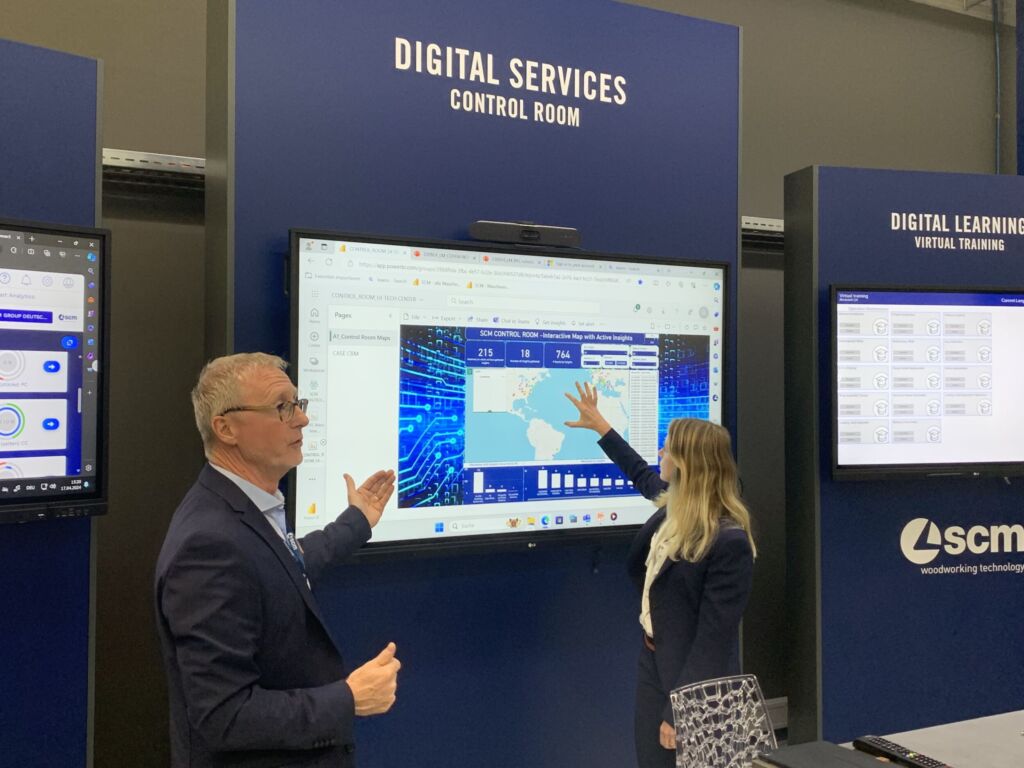 Denn digital war das Schlagwort auf der Eröffnung des Technologiecenters im April. Viel Platz räumt SCM der Software und den hochmodernen Spezialstationen ein: Maestro Lab für CNC-Bearbeitungszentren, Maestro Optiwise, Optimierer für die Zuschnittsbearbeitung, und Maestro Stackwise für das Stapeln von Teilen in der Formatierungsphase. Außerdem wurden die neuen digitalen Dienstleistungen für Maschinen präsentiert, die an das Maestro Connect IoT-System von SCM angeschlossen sind, angefangen mit dem neuen Digital Control Room. Hier erfährt der Anwender, wie die Daten verarbeitet werden, um proaktive und beratende Unterstützung zu bieten. Ziel ist es, die Produktionskontinuität des Kunden dank modernster digitaler Technologien und dem ständigen Engagement des SCM-Serviceteams zu gewährleisten.