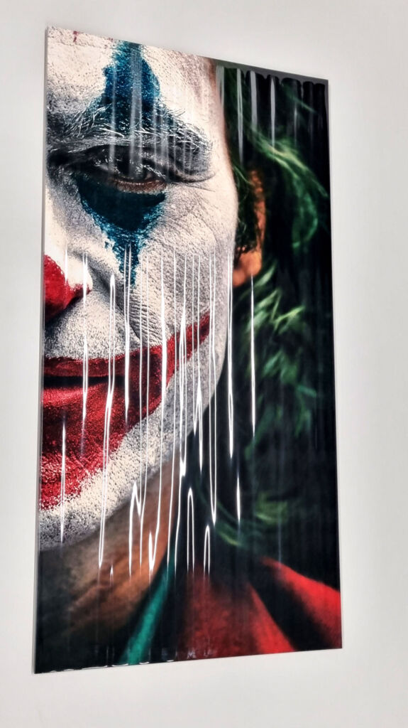 Beeindruckt waren die Besucher auch von einer Fliese in Hochglanz-Optik, welche den Joker zeigt. Die Detailschärfe und die Tiefenwirkung kommen bei diesem Glanzgrad besonders gut zur Geltung und lassen das Bild unerwartet realistisch wirken.