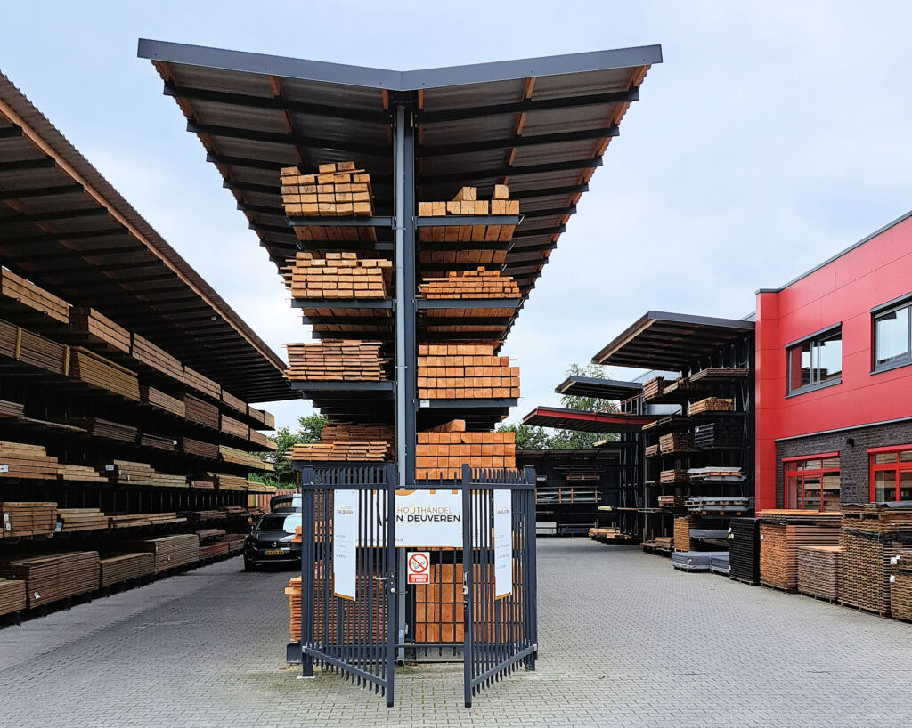 Weil der bisherige Standort des niederländischen Houthandel van Deuveren an seine Grenzen stieß, die Lagerkapazitäten nicht mehr erweitert werden konnten und die Zufahrt wegen der Lage in einem Wohngebiet schwierig war, entschied sich das Unternehmen für einen Umzug. Für den neuen Firmensitz in Dedemsvaart wurden jedoch noch Regalsysteme benötigt, und die Wahl fiel auf Ohra. Ausschlaggebend dafür war neben den technischen Eigenschaften vor allem die Möglichkeit einer individuellen Farbgebung der Regale. So bilden die Fassadengestaltung der verschiedenen Gebäude und die Innen- und Außenregale dank sich wiederholender Farben eine Einheit, die das Selbstverständnis des Holzhändlers widerspiegelt: Vor 25 Jahren gegründet, zählt er heute zu den maßgeblichen Händlern von Holzwaren in der Region Overijssel.
